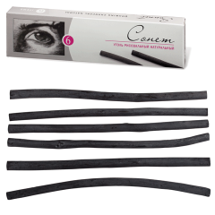 Натуральный уголь « Сонет » представляет собой круглые грифели (угольные палочки) различного диаметра. Производится методом специального обжига, при котором древесина сохраняет свою структуру. Выпускается в различных наборах.