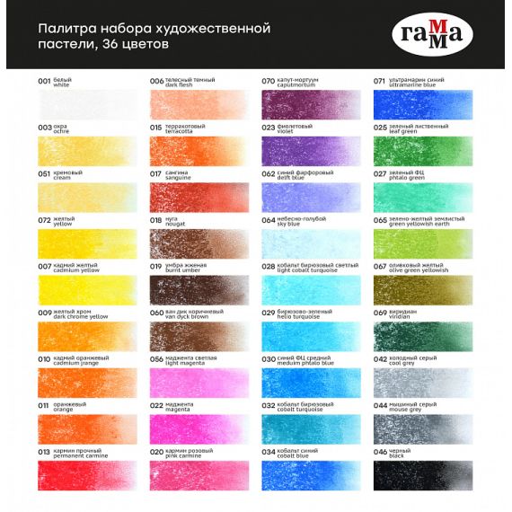 Пастель художественная Гамма Старый мастер с 36 насыщенными цветами предлагает уникальные возможности для создания выразительных и ярких работ. В этом наборе вы найдете весь спектр от нежных пастельных тонов до глубоких насыщенных оттенков, что делает его идеальным выбором для художников любого уровня мастерства.