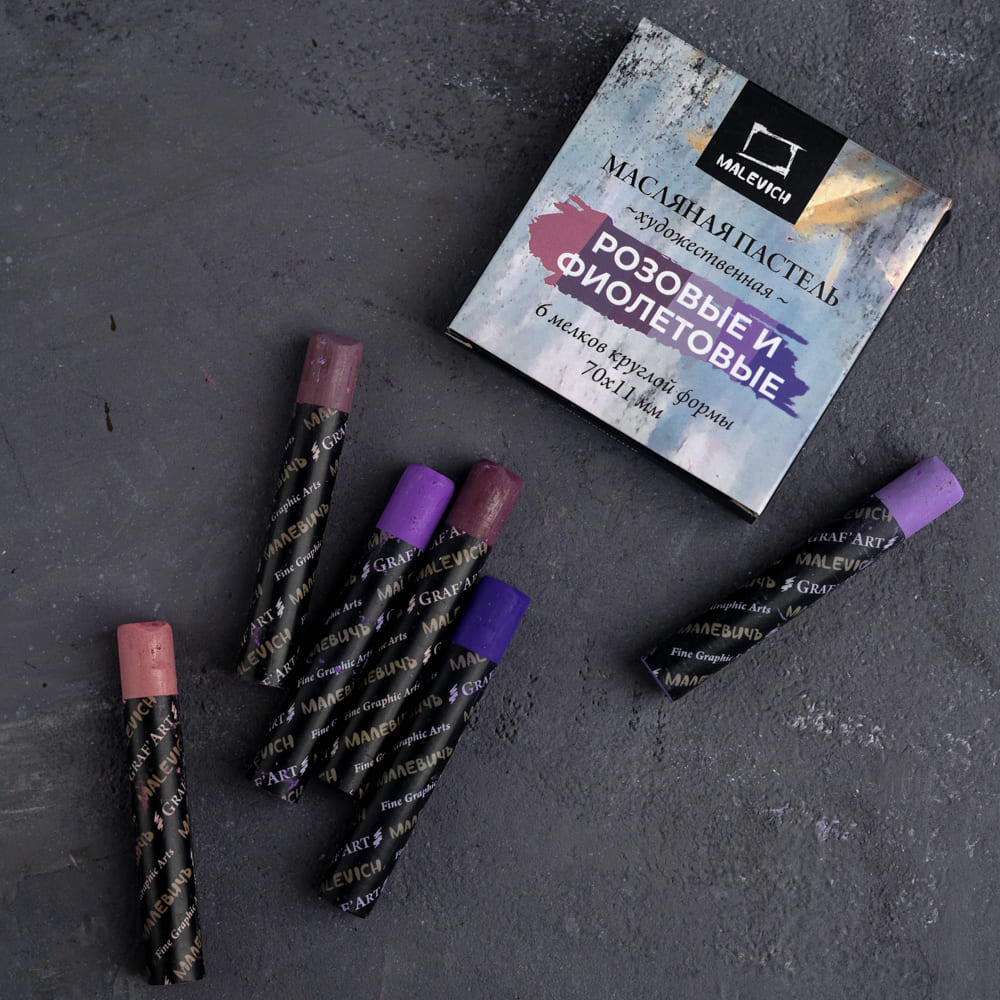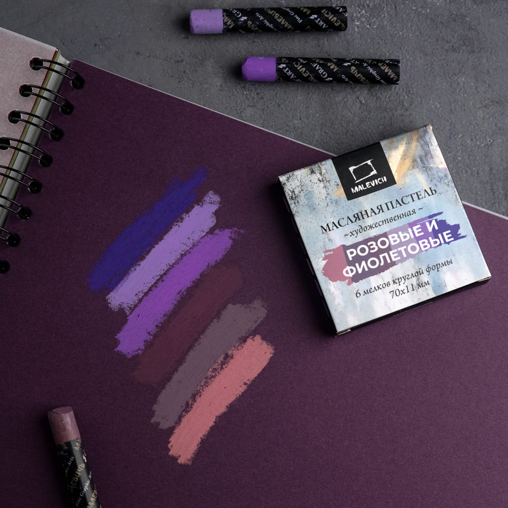 Малевичъ Пастель масляная 6шт Профессиональная Розовые и фиолетовые