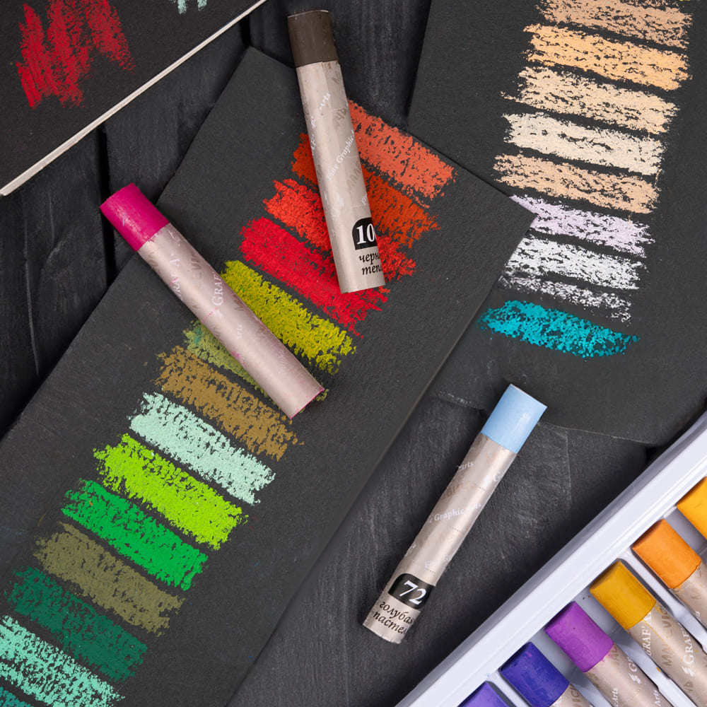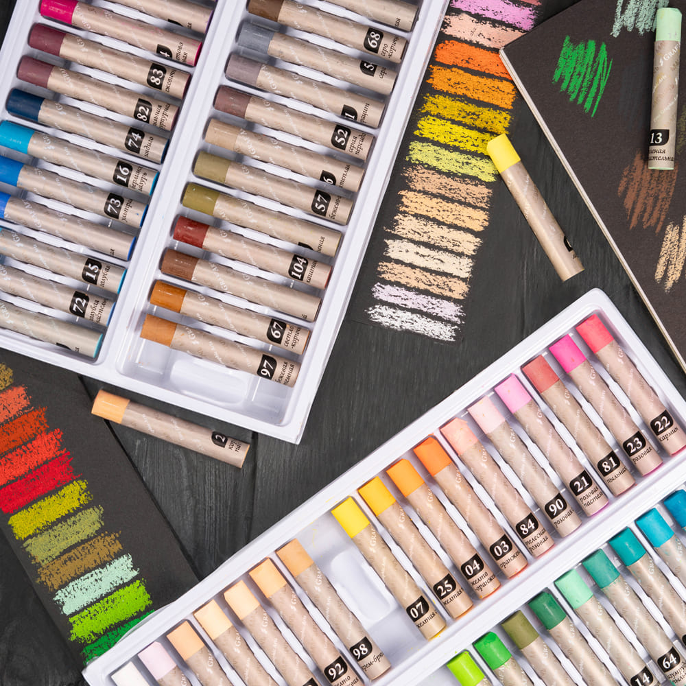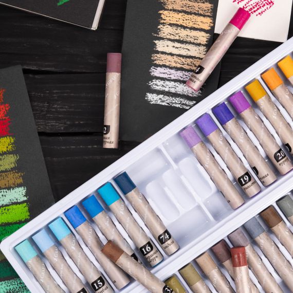 Традиционная масляная пастель от бренда «Малевичъ» — это практичный и довольно универсальный материал, который подойдет как для начинающих художников, так и для профессионалов. Пастель обладает высокой кроющей способностью, что позволяет работать на тонированных поверхностях, интенсивностью цвета, смешиваемостью и мягкостью. Материал легко ложится на различные типы поверхностей — бумага, картон, холст, дерево. Может использоваться в качестве основного материала для живописи или использоваться для смешанных техник, в том числе с применением разбавителей. Серия представлена наборами различной комплектации.