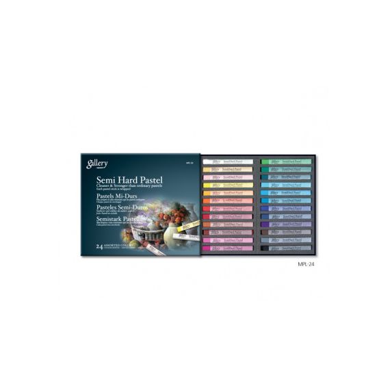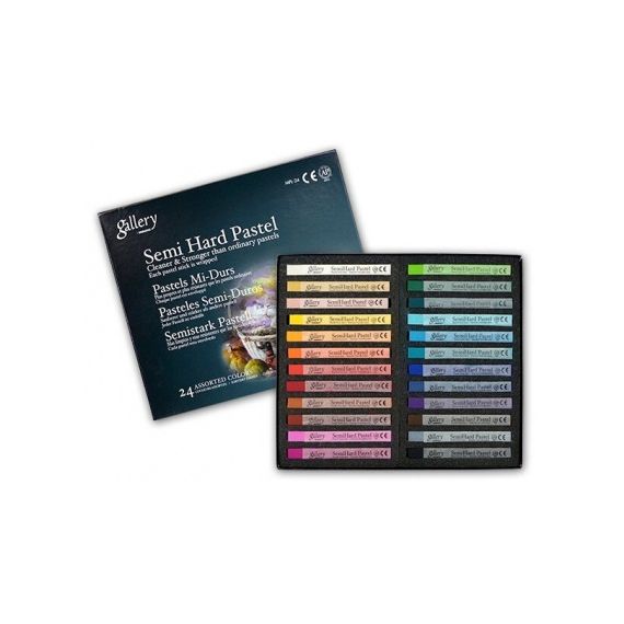 Наборы профессиональной сухой пастели GALLERY. Серия представлена наборами круглой и квадратной пастели разной твердости. Пастель GALLERY обладает широкой цветовой палитрой из 120 насыщенных цветов, стойких к выцветанию. Легко наносится, смешивается и растирается, отлично комбинируется с пастелью других серий.