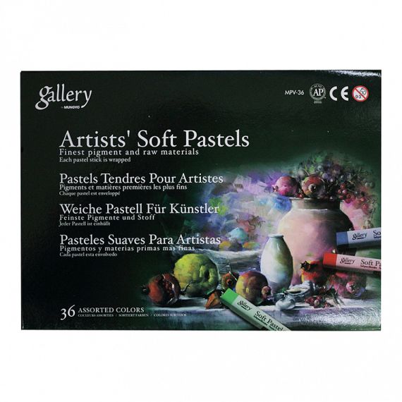 Сухая мягкая пастель "GALLERY Artists' Soft Pasteles" выпускается корейской компанией "Mungyo", основанной еще в 1946 году. Это высококачественная художественная пастель по доступной цене. Изготавливается только из нетоксичных сертифицированных пигменов, обладающих высокой светостойкостью. Набор включает в себя 36 красивых ярких оттенков. Они прекрасно ложатся на бумагу, с легкостью растушевываются, позволяют делать тонкие цветовые переходы, а также отлично подходят для техники наложения цветов. Квадратная форма пастели "GALLERY Artists' Soft Pasteles" позволяет проводить как тонкие линии - углом, так и широкие - ребром.