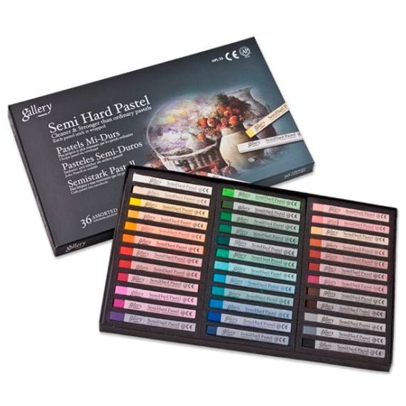 Сухая полутвёрдая пастель "GALLERY Artists' Semi-Hard Pastels" выпускается корейской компанией "Mungyo", основанной еще в 1946 году. Это высококачественная художественная пастель по доступной цене. Изготавливается только из нетоксичных сертифицированных пигменов, обладающих высокой светостойкостью. Набор включает в себя 36 красивых ярких оттенков. Пастель отличается прекрасным балансом "твёрдость-мягкость": она достаточно мягкая, чтобы хорошо ложиться на бумагу, растушевываться и смешиваться, но достаточно твердая, чтобы не образовывать крошки и пыль, загрязняющие работу. Квадратная форма пастели "GALLERY Artists' Semi-Hard Pastels" позволяет проводить как тонкие линии - углом, так и широкие - ребром.