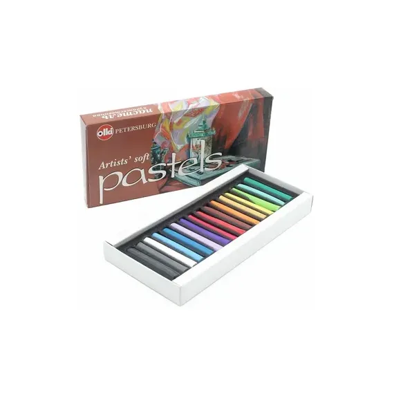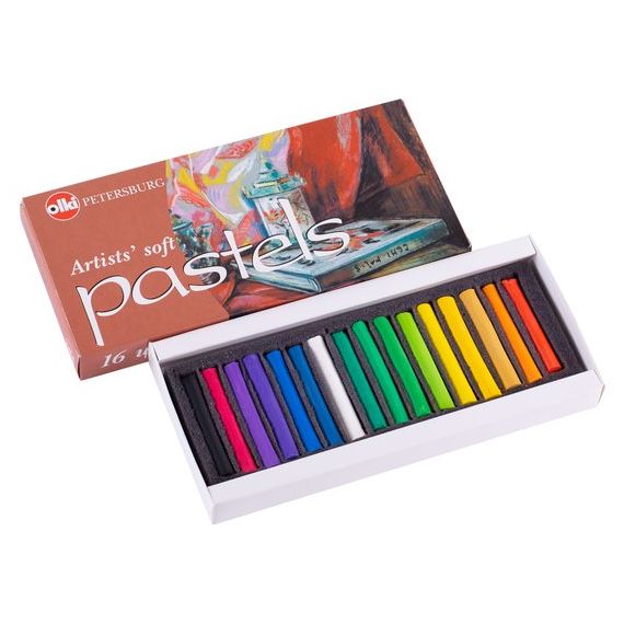 Мягкая пастель Olki серии Soft — разновидность сухой пастели, предназначенная для выполнения работ в традиционной технике. Пастель хорошо ложится на шероховатую основу, легко поддаётся растушёвке, создавая мягкую, бархатистую фактуру поверхности. Наложение пастели плотными слоями позволяет добиваться особой глубины и насыщенности цветового тона. В наборе 16 цветов.