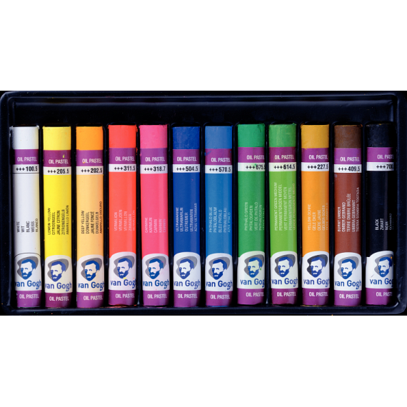 Набор масляной пастели Van Gogh Стартовый 12 цветов в картонной упаковке. Масляная пастель Van Gogh производится на основе чистых пигментов с добавлением жиров и воска. Пастель очень мягкая, не осыпается. Цвета легко смешиваются и перекрываются. Яркие, интенсивные оттенки. Пастель не меняет цвет с течением времени. Подходит для различных основ: бумага, картон, дерево, холст, ткань. Гарантия светостойкости большинства оттенков более 100 лет.