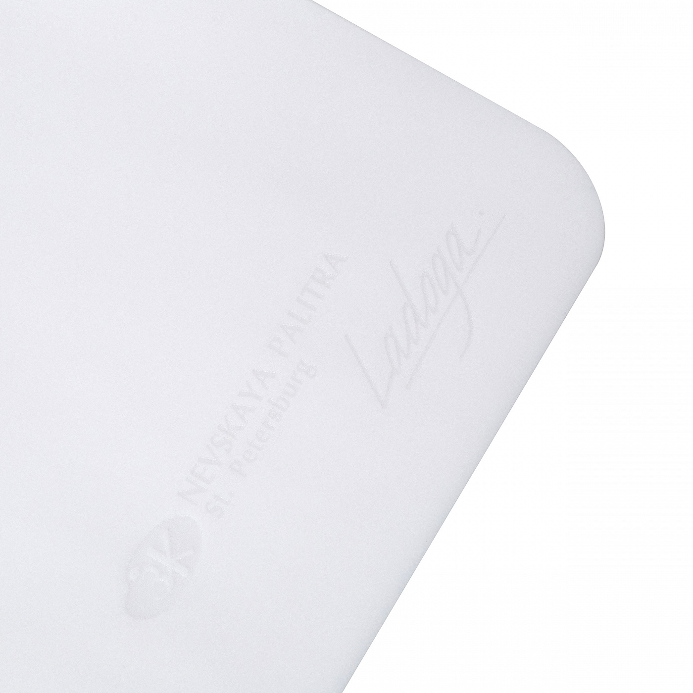 Палитра «Ладога» предназначена для смешивания всех видов красок: масляных, акриловых, акварельных, темперных, гуашевых. Выполнена из легкого и прочного материала – белого оргстекла (толщина 2 мм). Гладкая поверхность палитры легко очищается, устойчива к воздействию большинства видов очистителей, растворителей, лаков. Имеет прямоугольную форму с эргономичным изгибом для руки и отверстием для большого пальца. Для комфорта при продолжительной работе на пленэрах и в студиях отверстие снабжено мягкой силиконовой накладкой.