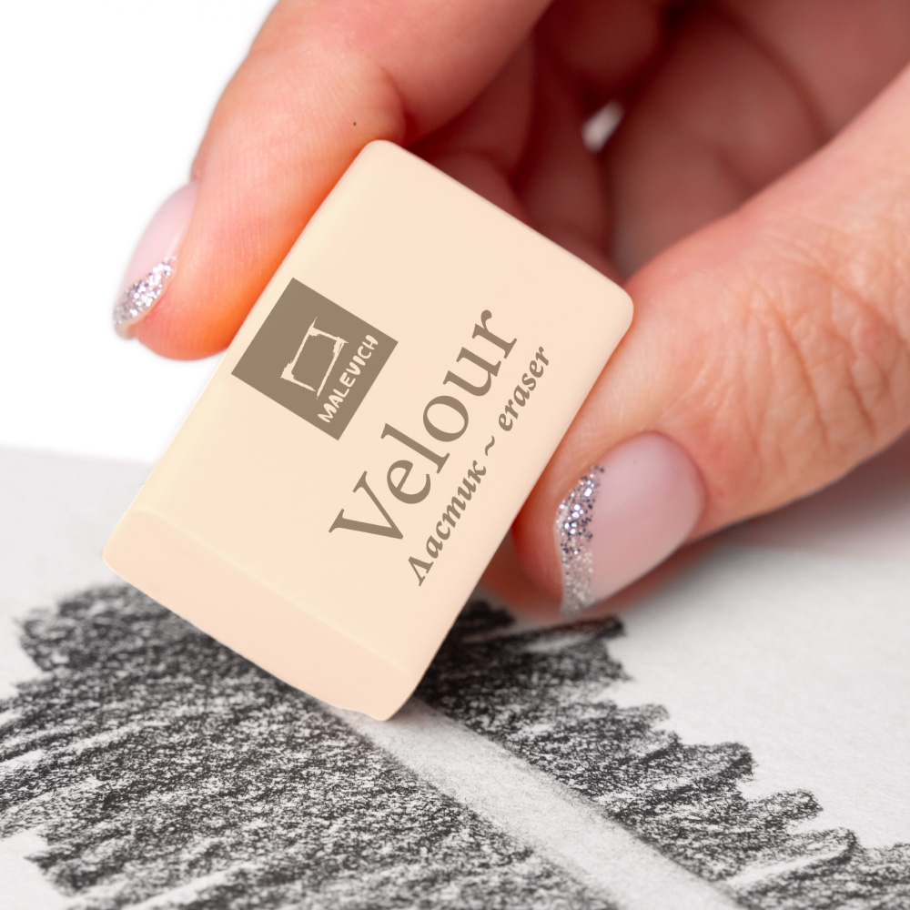 Ластик сделан из мягкого, тактильно приятного, материала, который не оставляет мелких крошек, весь мусор собирается и легко удаляется с бумаги не повреждая её.