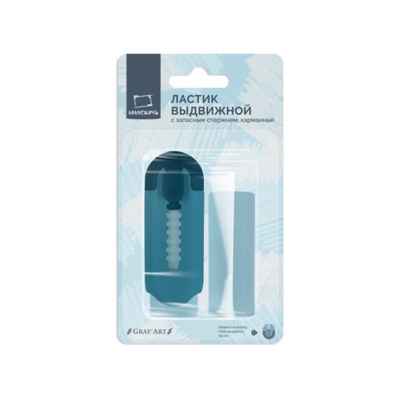 Маленький выдвижной карманный ластик, который удобно брать с собой. Поставляется в блистере с запасным блоком. Корректирует работы карандашом, углем и пастелью. Удобен для хранения в пенале вместе с кистями и карандашами. Благодаря корпусу всегда остается чистым. Кончик можно заточить для работы с мелкими деталями.