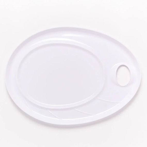 Палитра для акриловых красок выполнена из пластика с ультрагладким покрытием, которое позволяет легко очистить аксессуар даже от засохшей краски. Палитра овальной формы оснащена отверстием для пальца, размер 43х31 см.