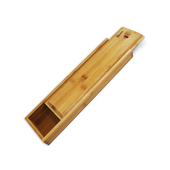 Большой пенал размером 3,5х10,7х38 см из натуральной древесины бамбука со сдвижной крышкой.