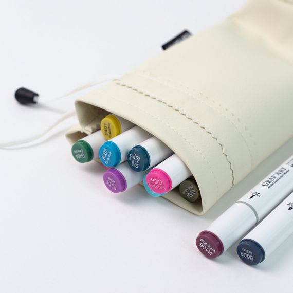 Пенал выполнен в виде мешочка из эко-кожи, застегивается при помощи шнурка на кулиске. Размер пенала 22,9х9 см. подойдет для большинства видов маркеров.