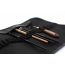 Скрутка выполнена из полиэстера в трех различных цветах. Внутри вшита эластичная резинка удерживающая кисти на своем месте. Предусмотрены ячейки для мастихинов. Специальная вставка из экокожи предохраняет ворс кисти от деформации. Материал износостойкий и не боится воды. Конструкция позволяет зафиксировать скрутку при любой толщине в зависимости от кол-ва кистей внутри. Пенал предназначен для кистей на короткой и средней ручке.