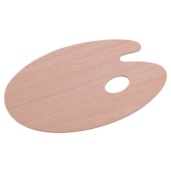 Деревянная палитра овальной формы. Палитра легкая и удобная, имеет отверстие для большого пальца, ее удобно держать в руках, работая стоя. Эта палитра популярна среди школьников и студентов художественных специальностей. Подойдет для смешивания масляных красок, темперы или акрила.