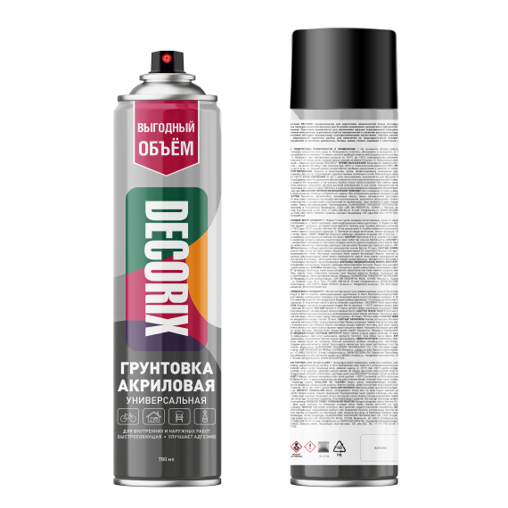Высококачественная грунтовка DECORIX® предназначена для подготовки поверхностей перед последующим окрашиванием любыми видами лакокрасочных материалов при бытовом применении, декоративно-оформительских работах, строительстве и ремонте. Грунтовка применяется для увеличения адгезии окрашиваемой поверхности с последующими слоями наносимых материалов, укрепления слабых поверхностей и снижения расхода последующих слоёв краски, лака или эмали. Грунтовка обладает прекрасными порозаполняющими свойствами, образуя равномерно впитывающую поверхность. Аэрозольная грунтовка удобна для нанесения на труднодоступные поверхности. Идеально подходит для поверхностей из металла, древесины, бетона, камня, стекла, картона, керамики и некоторых видов пластмасс.