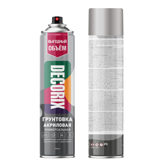 Высококачественная грунтовка DECORIX® предназначена для подготовки поверхностей перед последующим окрашиванием любыми видами лакокрасочных материалов при бытовом применении, декоративно-оформительских работах, строительстве и ремонте. Грунтовка применяется для увеличения адгезии окрашиваемой поверхности с последующими слоями наносимых материалов, укрепления слабых поверхностей и снижения расхода последующих слоёв краски, лака или эмали. Грунтовка обладает прекрасными порозаполняющими свойствами, образуя равномерно впитывающую поверхность. Аэрозольная грунтовка удобна для нанесения на труднодоступные поверхности. Идеально подходит для поверхностей из металла, древесины, бетона, камня, стекла, картона, керамики и некоторых видов пластмасс.