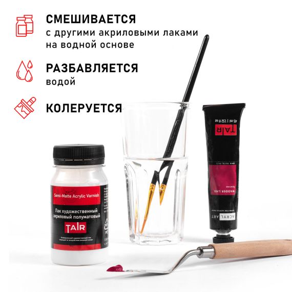Акриловый художественный лак. Образует прочное однородное полуматовое покрытие. Смягчает яркость тонов красок, защищает от воздействия внешней среды.