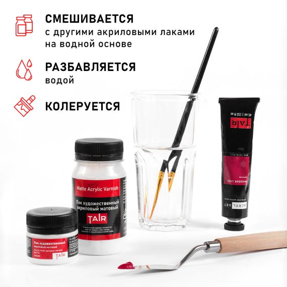 Акриловый художественный лак. Образует прочное однородное матовое покрытие. Смягчает яркость тонов красок, защищает от воздействия внешней среды.