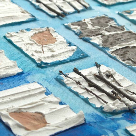 В течение 15-20 минут, пока паста не потеряла эластичности в неё легко можно вклеить любые инородные элементы по принципу мозаики. Например, листья, монеты, ракушки или небольшие камешки. Также в рельефные пасты можно замешивать различные наполнители.