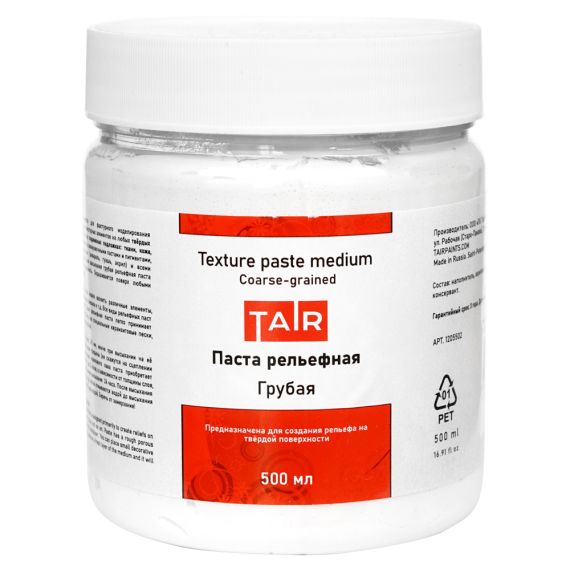 Грубая рельефная паста предназначена для создания рельефа на любой твёрдой основе. Не подходит для работы на подвижных подложках: ткани, коже, холсте и пр.