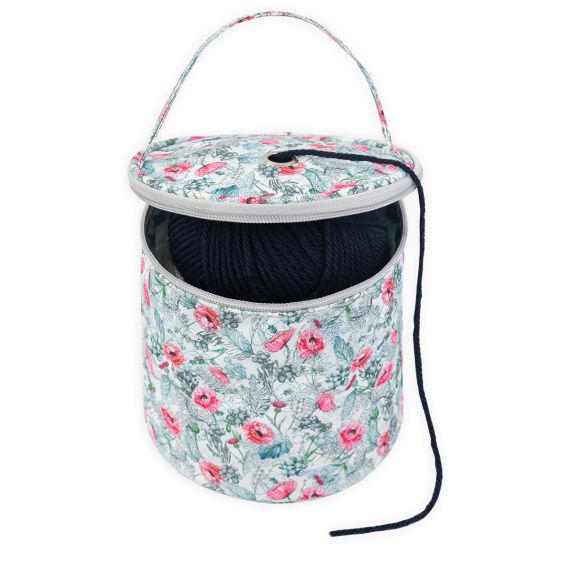 Клубочница оптимального размера 14 х 14.5 см, можно взять с собой в дорогу во время путешествия, занимает немного места и в нее помещается от одно до трех мотков.