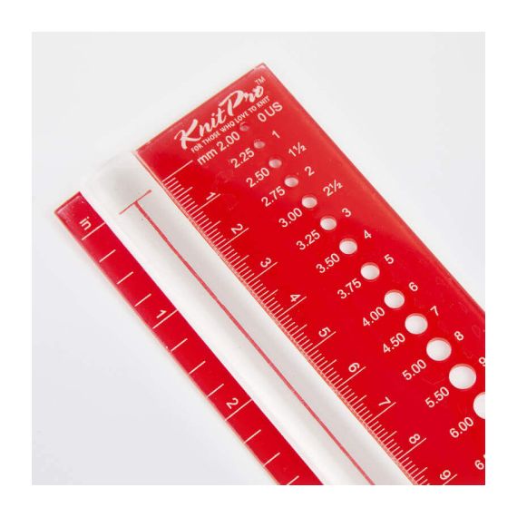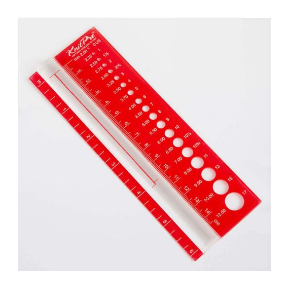 KnitPro Линейка для определения размера спиц и плотности вязания, пластик, красный