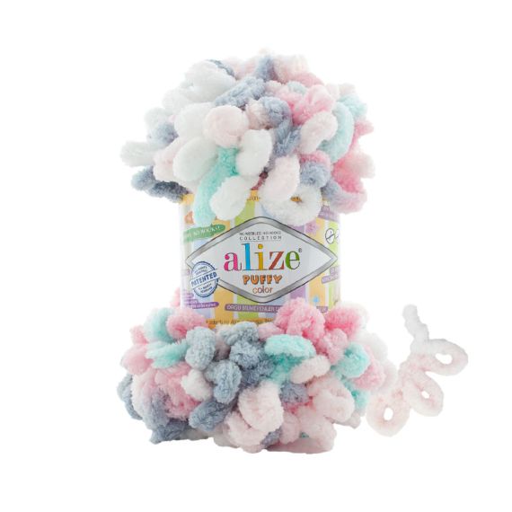 Alize Puffy Color - это уникальная пряжа, которая была разработана компанией Alize и запатентована как пряжа с готовыми петлями. Это означает, что для вязания не требуются спицы или крючки, что делает ее очень практичной для вязания одной рукой. Эта пряжа также идеально подходит для детей, так как она очень удобна и безопасна. Она может быть использована, чтобы научить детей вязанию дома, в детском саду или в школе.
