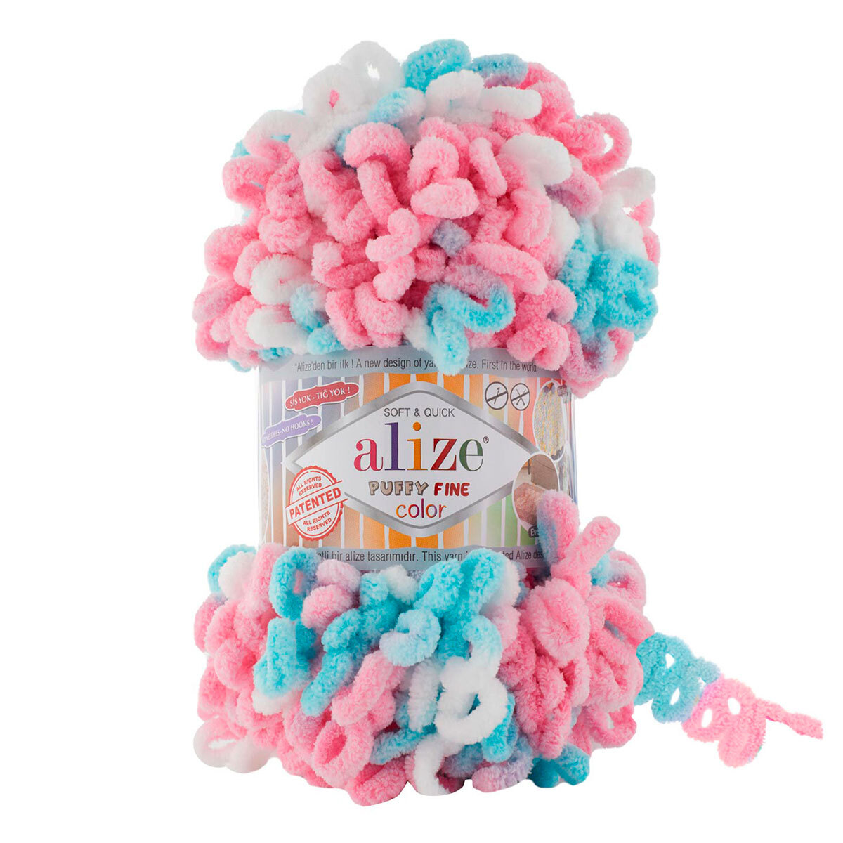 Alize Puffy Color - это уникальная пряжа, которая была разработана компанией Alize и запатентована как пряжа с готовыми петлями. Это означает, что для вязания не требуются спицы или крючки, что делает ее очень практичной для вязания одной рукой. Эта пряжа также идеально подходит для детей, так как она очень удобна и безопасна. Она может быть использована, чтобы научить детей вязанию дома, в детском саду или в школе.