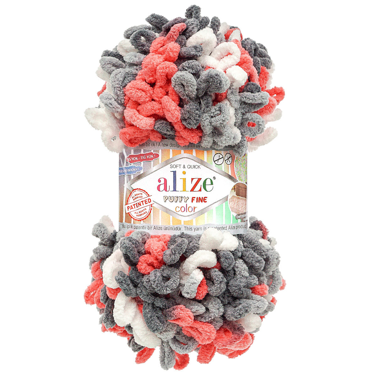 Alize Puffy Color - это уникальная пряжа, которая была разработана компанией Alize и запатентована как пряжа с готовыми петлями. Это означает, что для вязания не требуются спицы или крючки, что делает ее очень практичной для вязания одной рукой. Эта пряжа также идеально подходит для детей, так как она очень удобна и безопасна. Она может быть использована, чтобы научить детей вязанию дома, в детском саду или в школе.