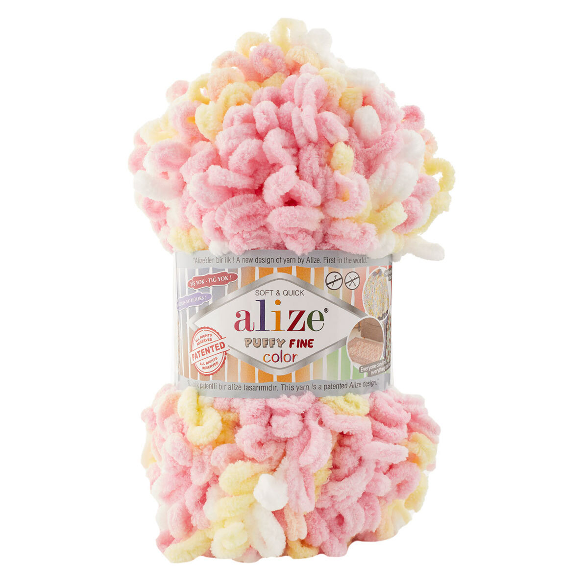 Alize Puffy Color - это уникальная пряжа, которая была разработана компанией Alize и запатентована как пряжа с готовыми петлями. Это означает, что для вязания не требуются спицы или крючки, что делает ее очень практичной для вязания одной рукой. Эта пряжа также идеально подходит для детей, так как она очень удобна и безопасна. Она может быть использована, чтобы научить детей вязанию дома, в детском саду или в школе.