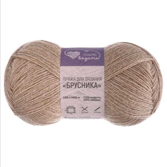 Люблю вязать Пряжа Брусника носочная 100г 400м 75% шерсть 25% нейлон 818 Бежевый