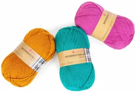 Название этой пряжи подчеркивает, что в состав входит мериносовая шерсть - 50%, а также 50% полиакрилнитрильных волокон, это значит, что пряжа обладает мягкостью, нежностью. Номер пряжи идеален для вязания изделия в одну нить.