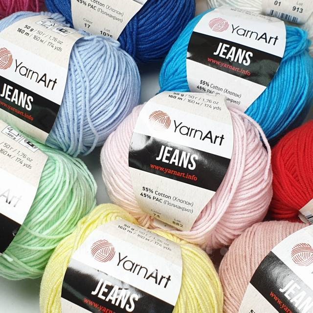 Пряжа YarnArt Jeans любима не только вязальщицами со стажем, но и новичками в этом увлекательном занятии. Приятная текстура, разнообразие оттенков, оптимальная толщина сочетаются с универсальностью применения: из YarnArt Jeans можно создавать детские вещи, кардиганы, туники и свитера для взрослых, а также сувениры и игрушки.