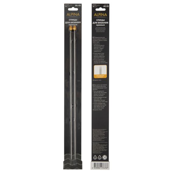 Спицы для вязания прямые Alpina SIL-02 предназначены для вязания небольших и средних размеров изделий из пряжи любых видов.