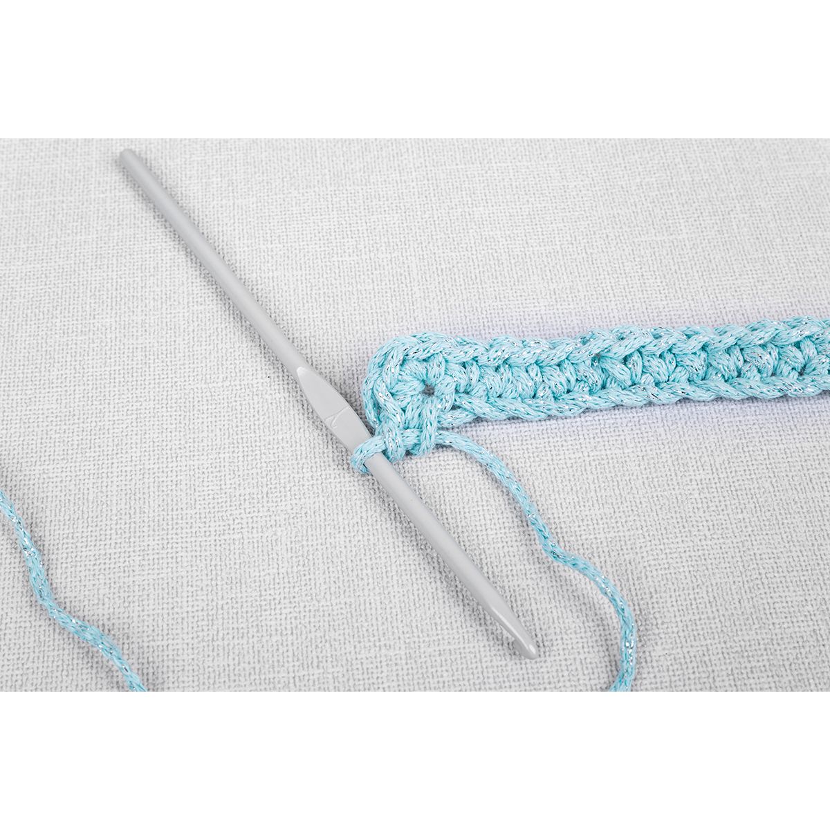 Крючок изготовлен из алюминия, с тефлоновым покрытием для лучшего скольжения пряжи.