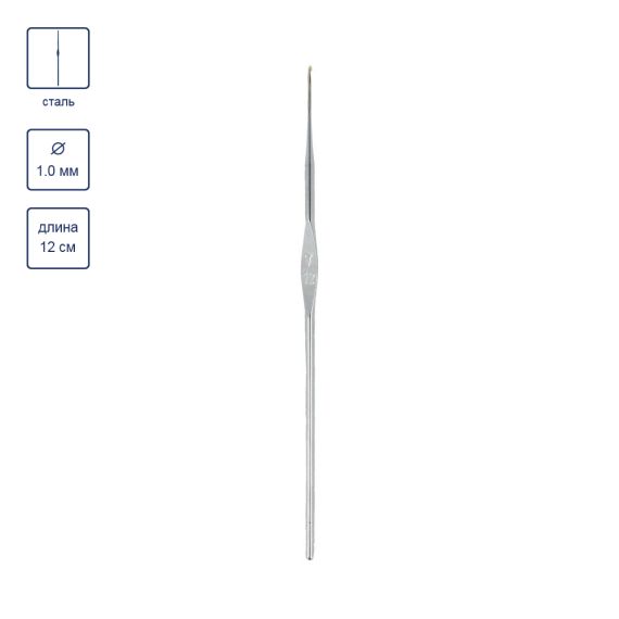 Крючок металлический "Gamma" MCH сталь d 1.0 мм 12 см для вязания ажура тонкой нитью.