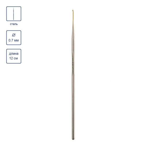 Позолоченная головка обеспечивает хорошее скольжение нити, а также позволяет отчетливо видеть петлю на крючке, что облегчает вязание тонкого полотна.