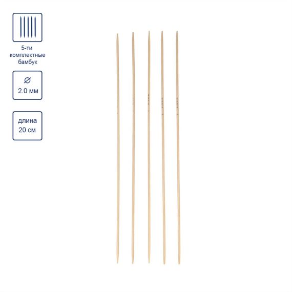 Gamma Спицы 5-ти комплектные чулочные BC2 бамбук d2.0мм 20см 5шт