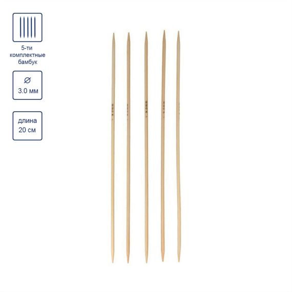Спицы 5-комплектные "Gamma" BC2 бамбук d 3.0 мм 20 см 5 шт.