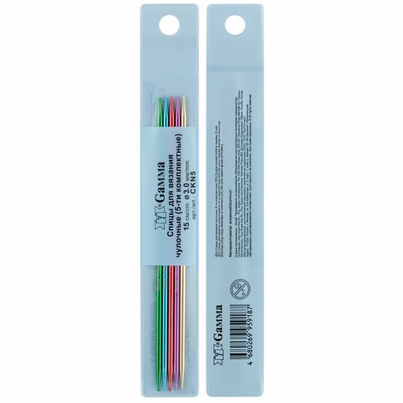 Спицы 5-ти комплектные "GAMMA" CKN5 предназначены для вязания носков, варежек, рукавов, обвязывания горловин.