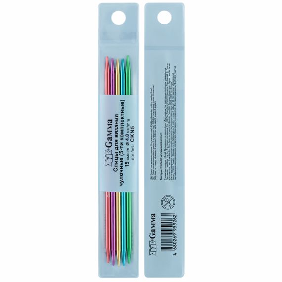 Спицы 5-ти комплектные "GAMMA" CKN5 предназначены для вязания носков, варежек, рукавов, обвязывания горловин.