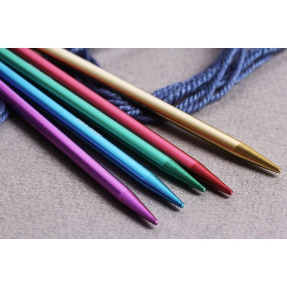 Все спицы разных ярких цветов: красный, сиреневый, желтый, зеленый, синий, что помогает отслеживать начало или конец вязания, и создают позитивное настроение.