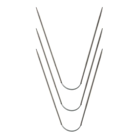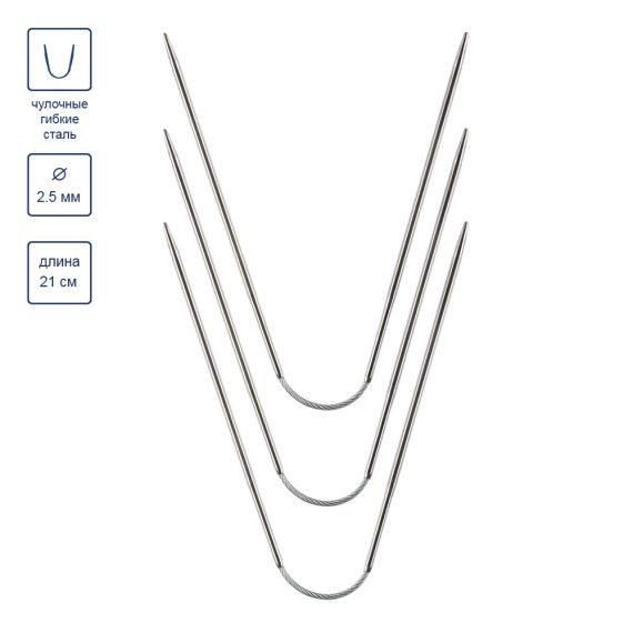 Чулочные гибкие спицы позволяют вам вязать круглые формы без швов, как это было бы при использовании обычных прямых спиц. Гибкий кабель между спицами позволяет вам создавать маленькие диаметры, какие часто требуются при вязании носков.