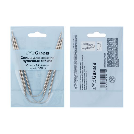 Спицы чулочные гибкие "Gamma" KNF-3 это специализированный вид спиц, которые используются для вязания носков, варежек и других мелких изделий в круге. Они обычно имеют длинные и гибкие металлические или пластиковые спицы с острыми концами.