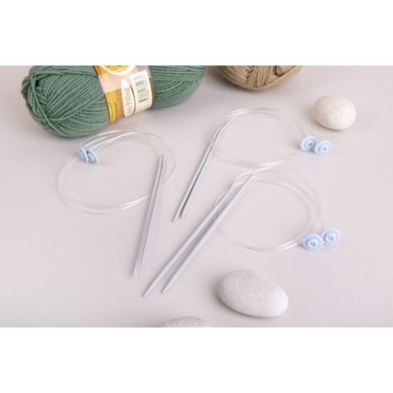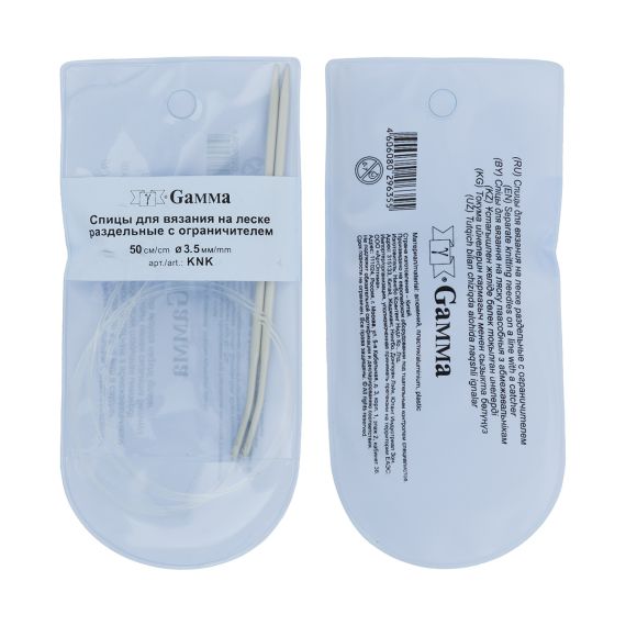 Спицы раздельные на леске "Gamma" KNK это специальный вид спиц для вязания, которые имеют две отдельные длинные спицы, соединенные гибким кабелем или леской. Они обеспечивают удобство при вязании круглых и трубчатых изделий, таких как носки, варежки или рукава свитеров.