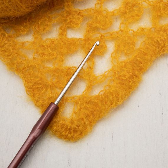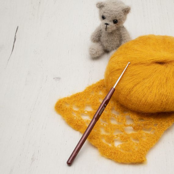 Крючок с пластиковой ручкой от Hobby&Pro – удобный инструмент для вязания нитками и тонкой пряжей. Стержень из нержавеющей стали прочный и очень гладкий, поэтому пряжа при вязании не деформируется, сохраняет структуру и ворс. Такой крючок отлично подходит для материалов, которые незначительно растягиваются и не скользят, например шерсти, акрила или хлопка без мерсеризации.