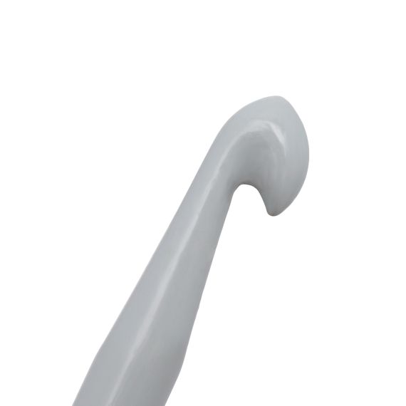 Крючок имеет классическую форму. Благодаря выемке для пальца (направляющей площадке) инструмент легко удерживать в правильном положении, а канавка для нити помогает формировать аккуратные петли.