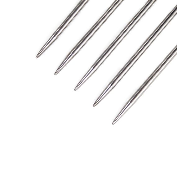 Концы спиц слегка закруглены, не травмируют пальцы, не расщепляют пряжу, при этом легко подцепляют петлю, повышая скорость вязания и обеспечивая комфорт.